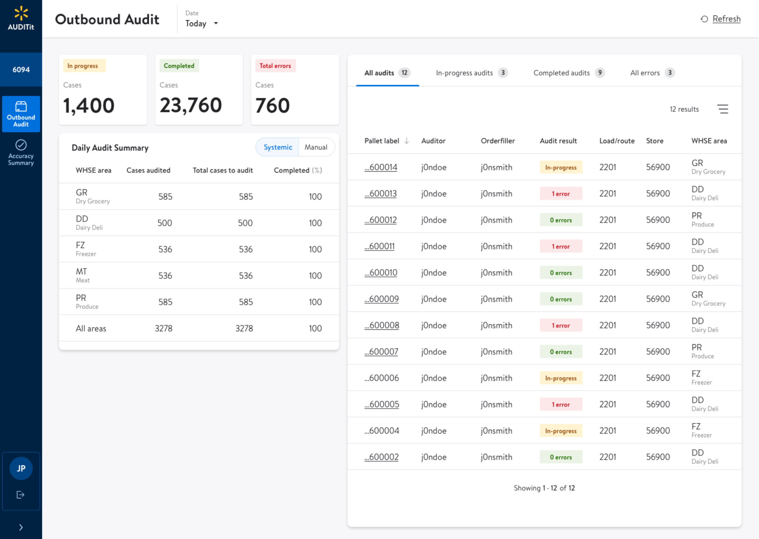 An audit suite that provides warehouse managers at Walmart with an all-encompassing picture of their entire facility. Employees can also easily and quickly report and close an audit with its help.
